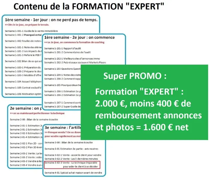 Le TOP : facile et amusante, cette formation PRO vous apportera le must des utiles connaissances pour vendre au mieux votre maison. Vous choisirez : VENDRE PLUS VITE ou VENDRE PLUS CHER...